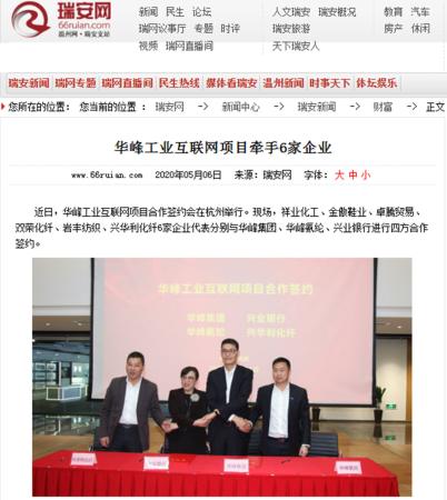 近日,華峰工業(yè)互聯(lián)網(wǎng)項(xiàng)目合作簽約會在杭州舉行�,F(xiàn)場,祥業(yè)化工、金傲鞋業(yè)、卓騰貿(mào)易、雙榮化纖、巖豐紡織、興華利化纖6家企業(yè)代表分別與華峰集團(tuán)、華峰氨綸、興業(yè)銀行進(jìn)行四方合作簽約。