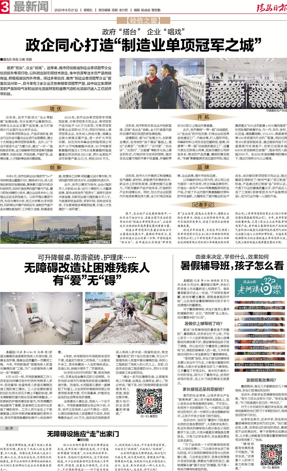 (本文原載于2020年8月21日《瑞安日報》通訊員 程前 記者 項穎)